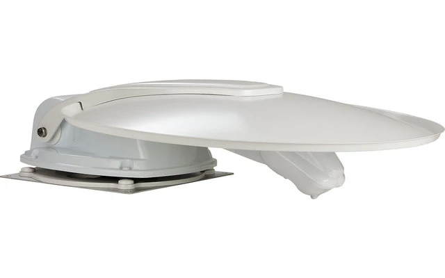Der große Spiegel ermöglicht den Empfang von TV- und Radioprammen in SD, HD und UltraHD. Niedrige Gesamthöhe von 20 cm im eingefahrenen Zustand