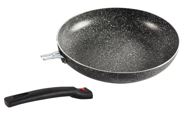 Alu-Pfanne mit abnehmbarem Griff. Hochwertige Antihaftbeschichtung innen.