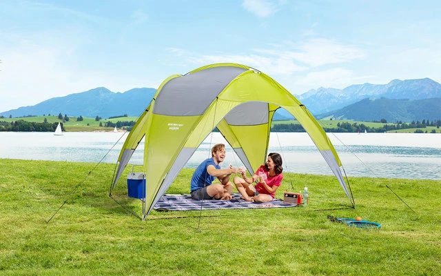Lieferumfang: Zelthaut, 2 Seitenwände, Fiberglasgestänge, Abspannmaterial.